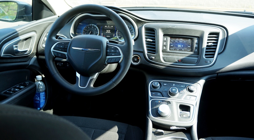 Разница в интерьерах очерчивает рамки пропасти между классами автомобилей. Дарт достался в комплектации «SXT», подразумевающей 184-сильный двигатель с парой опций в виде АКПП и подогрева передних сидений. Крайслер с тем же двигателем был в комплектации «Limited»: 5-дюймовый экран на центральной консоли, двухзонный климат-контроль, электромеханический ручник и прочие приятные мелочи.