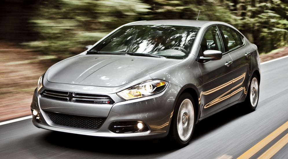 В результате попытки догнать и перегнать расходящиеся как горячие пирожки немецкие и азиатские седаны гольф-класса союз Крайслера и Фиата породил Dodge Dart, один из самых больших (4 672 х 1 830 х 1 465 мм) и тяжёлых (от 1 456 кг) автомобилей в сегменте. Построенный на модифицированном шасси Alfa Romeo Giulietta, в США Дарт предлагается с несколькими бензиновыми 4-цилиндровыми двигателями: 1,4-литровым 160-сильным турбированным и атмосферными 160-сильным 2-литровым и 184-сильным 2,4-литровым. Трансмиссии – на любой вкус и цвет: роботизированная КПП с двумя сцеплениями (сочетающаяся только с самым маленьким двигателем), гидротрансформаторная 6-ступенчатая АКПП и механическая 6-ступенчатая КПП. Опций по современным меркам не так уж и много, и все они стандартные для класса: бесключевой доступ, мультимедийная система с расширенными возможностями и большим экраном, запуск двигателя кнопкой, камера заднего вида и т.д.