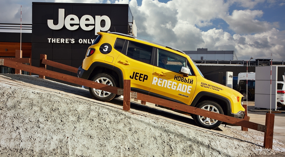 Jeep, благодаря своей легендарности, заслужил право стать именем нарицательным. Многие в нашей стране называют «джипами» все, что отличается от легковых седанов, хотя «по паспорту» никакими «джипами» они не являются. Найти и протестировать новинку нам довелось на внедорожном полигоне Jeep Territory, который находится в Москве сразу за выставочным комплексом Crocus Expo. Разминка началась на той части, которая называется 4X4 Academy. Renegade продемонстрировал, что даже малокубатурный турбомотор объемом 1,4 литра способен «затащить» кроссовер вверх по бетонной лестнице без особого труда. Диагональное вывешивание кроссовер также не испугало. Спустя примерно секунду электроника почувствовала отсутствие сцепления у подвешенного колеса, заблокировала его тормозными механизмами, а момент автоматически ушел на загруженное.Off-road зона построена так, чтобы максимально продемонстрировать возможности внедорожников от Wrangler до Grand Cherokee. Renegade без особого труда удалось съехать по бревенчатому спуску, подняться и остановиться на 40% склоне, преодолеть грязевую лужу боком, забраться на 45-градусный подъем и спуститься по глиняному склону с одновременным вывешиванием и поворотом. Автоматический режим полноприводной трансмиссии то и дело «задумывается» в момент смены покрытия. Единственный способ побороть задумчивость – заблокировать муфту принудительно. Это может даже «младшая» трансмиссия Active Drive. На ровной дороге Renegade стартует сразу со второй передачи. Для тех, кто хочет иметь возможность использовать первую ступень (передаточное число тут – 4,71) в качестве пониженной передачи и задействовать ассистент спуска с горы, доступна расширенная трансмиссия Active Drive Low. Самая «злая» версия TrailHawk обладает дорожным просветом в 210 мм, увеличенным до 205 миллиметров ходом задней подвески и дополнительным режимом «Скалы». Углы въезда и съезда составляют 30 и 34° соответственно (против 18 и 30° у переднеприводных машин), а угол рампы достигает 24° против 21°.