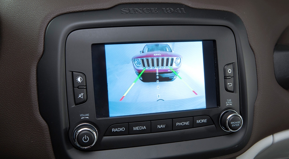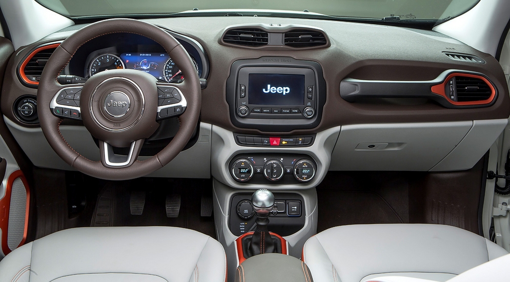 Признаемся, что хотя концепция изначально маркетинговая, и машина сделана по логике «казаться, а не быть», задача дизайнерам удалась. Renegade буквально нашпигован различными «фишками»: рисунок в форме буквы «X» на задних фонарях напоминает о выштамповке на топливной канистре, которая была закреплена на «корме» у Виллиса. Крыша тоже имеет характерную Х-образную продавку и может быть при желании полностью демонтирована. Над экраном мультимедийной системы расположилась гордая и слегка наивная надпись «с 1941 года». Будем надеяться, что речь идет не о дате обновления прошивки…