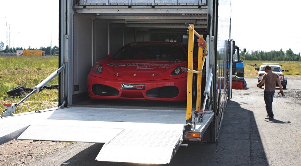 Думаю, что мой ответ предугадать несложно. Ferrari – машина, плакаты с которой были в детстве развешаны по моей комнате, а модельки ровным строем стояли на полках. Ferrari – машина, которую, встретив на улице, провожаешь взглядом до самого горизонта. Ferrari – машина-мечта! И вот она стоит в трех шагах от меня, спрятанная в недрах огромного трейлера.