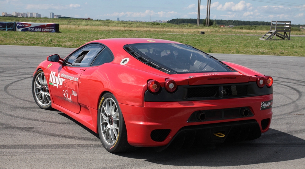 Баа… да это же не просто Ferrari. Это Ferrari F430 Challenge – специальная версия, подготовленная для участия в шоссейно-кольцевых гонках. Фактически профессиональный гоночный болид.