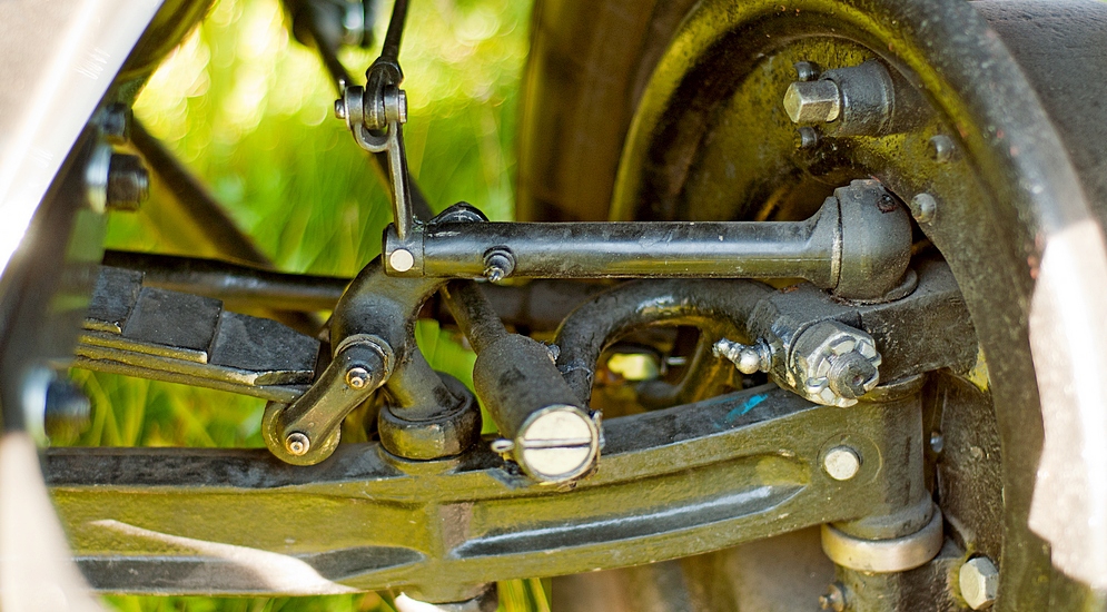 Есть такое иноземное словосочетание – torque tube. По-русски – «труба карданного вала». Если совсем по-русски, то это система, при которой кардан помещается в закрытой трубе, являющейся продольной тягой. Крутящий момент толкал машину в раму через этот механизм. Конструкция спорная, но она была такой, и никуда от этого не деться. По этой причине на «полуторку» невозможно поставить обычный карданный вал: без трубы усилие срывает задние полуэллиптические рессоры. Схема с использованием толкающей трубы была типична для многих американских автомобилей того времени. Таким образом, рама выполняла и функции рессоры как элемента подвески. Отсюда кажущаяся излишняя мягкость шасси, которая стала хорошим поводом для обвинения её в ненадёжности. Если перегрузить, то можно и БелАЗ сломать, и рама тут ни при чём. А передняя рессора, кстати, у ГАЗ-АА одна, и она поперечная.