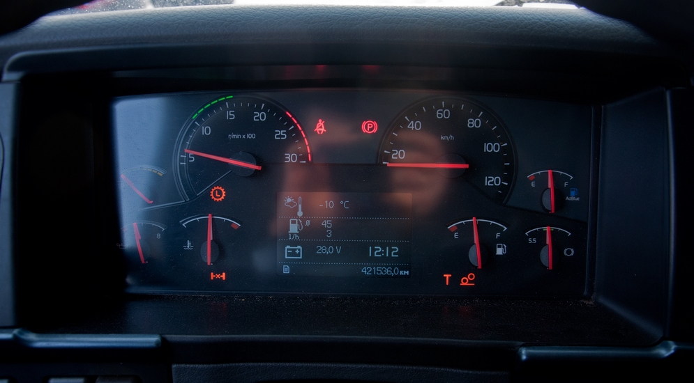 Знаете, что я вспомнил при взгляде на кнопки в кабине этого грузовика? Панель старой доброй «десятки». Если бы её чудовищные по размеру кнопки были сделаны так же аккуратно и добротно, а консоль не скрипела при нажатии, то у «десятки» и Вольво было бы хотя бы что-то общее. Преимущество клавиш заключается в том, что по ним не промажешь. К тому же, ими приятно щёлкать. Сильно повёрнутая к водителю часть панели справа позволяет доставать до расположенных на ней органов управления легко и непринуждённо.
