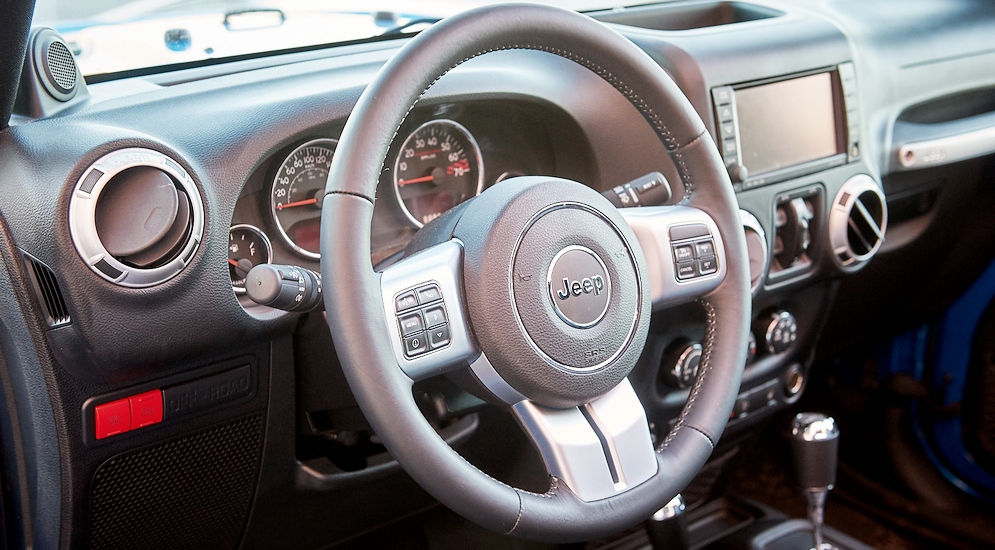Руль регулируется только по высоте и в очень скудном диапазоне, так что удобнее всего здесь будет невысоким водителям. Я кое-как устроился, но… Уже через пару дней я мечтал о любом другом современном автомобиле с нормальной эргономикой. Ездить на Wrangler каждый день сможет либо фанат, либо… Либо не сможет.