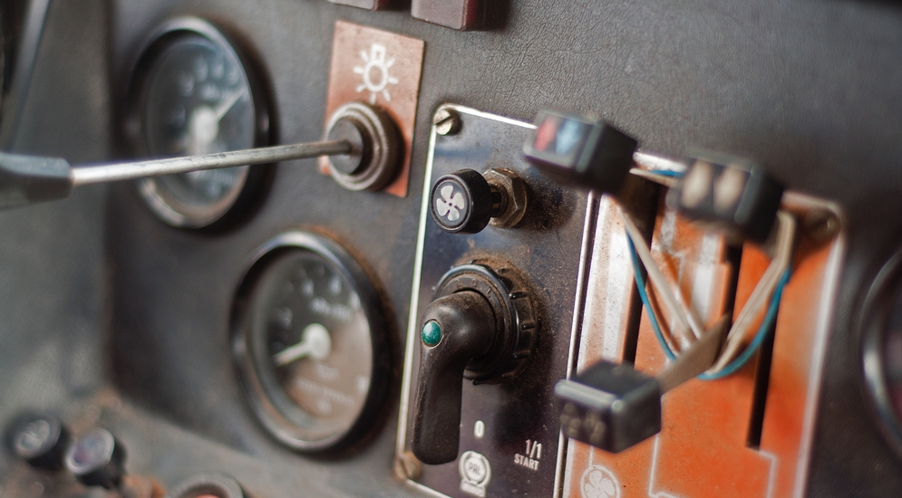 Настал момент Х – мы запускаем двигатель. Сразу после поворота ключа из-под кабины раздаётся звук мотора. Заметьте, я не сказал «шум», «рёв» или что-то подобное: он работает тихо и очень ровно. Ехать ещё рано, сначала надо накачать давление в пневматической системе. Вращающейся рукояткой в нижней правой части панели чуть добавляем обороты и ждём, пока компрессор не завершит свою работу. Через несколько минут манометры позволяют ехать: тормозные колодки можно сжать, разблокировав колёса.