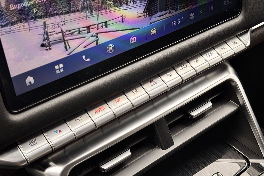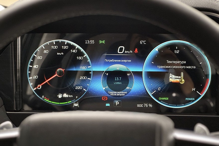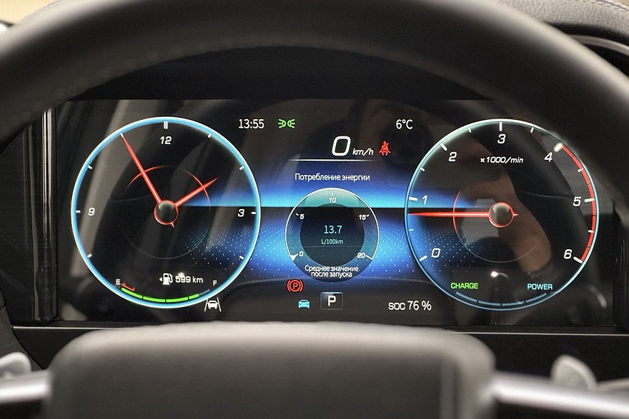 Дело в том, что 12,3-дюймовый экран интерфейсом копирует мерседесовскую «приборку». И не только графикой – все разделы меню и шрифты идентичны, даже надпись 4MATIC в одной из вкладок на месте! Забавно. Но ощущения – как от сумки Louis Vuitton из киоска в подземном переходе. Дисплей не такой чёткий и контрастный – ему не хватает разрешения, а стекло сильно бликует. Не считая этого, пользоваться панелью приборов удобно – всё-таки образец для клонирования был выбран удачно, не поспоришь.