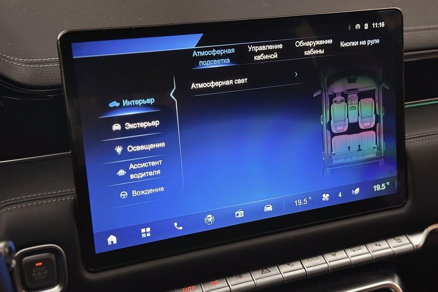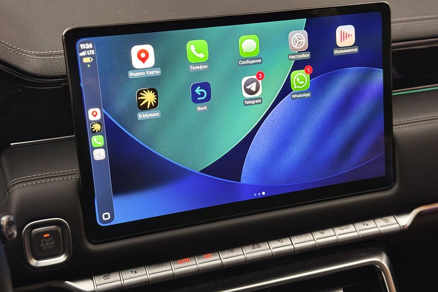 Центральный дисплей диагональю 14,6 дюйма не блещет быстродействием или высоким разрешением: на нажатия он откликается неохотно, иконки и надписи чересчур крупные. Огорчает и отвратительная русификация: «Атмосферная свет», «Обнаружение кабины», «Нстройка голоса», «Камера поддона»… И графика интерфейса слишком уж незатейлива. Есть поддержка Apple CarPlay – и на том спасибо. Но панель приборов куда интереснее этого тачскрина!
