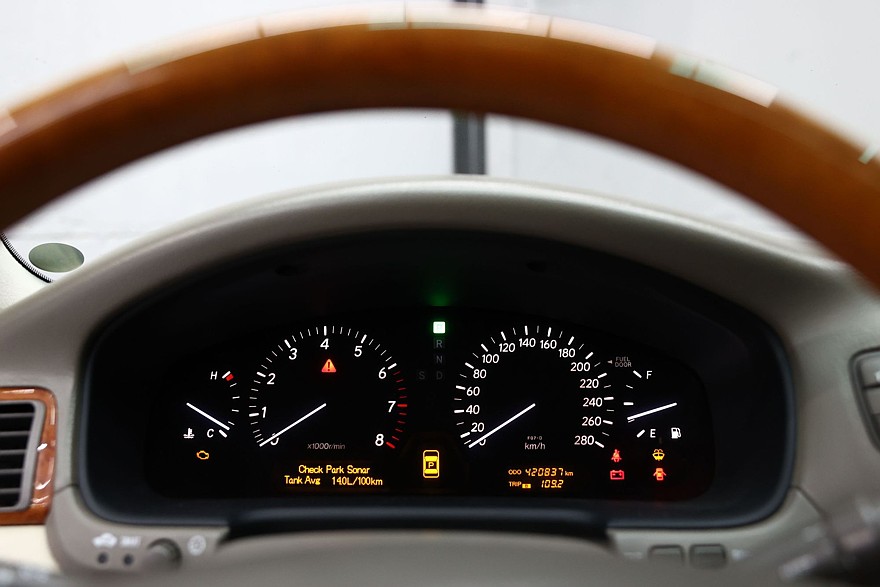 Двигатель 3UZ-FE – атмосферный V8 объёмом 4,3 литра (282 л.с., 455 Нм). Очень интересный мотор: тяговитый с низов и при этом имеющим весьма высокий потолок оборотов для такой конфигурации – красная зона начинается лишь после шести тысяч.