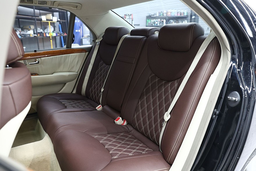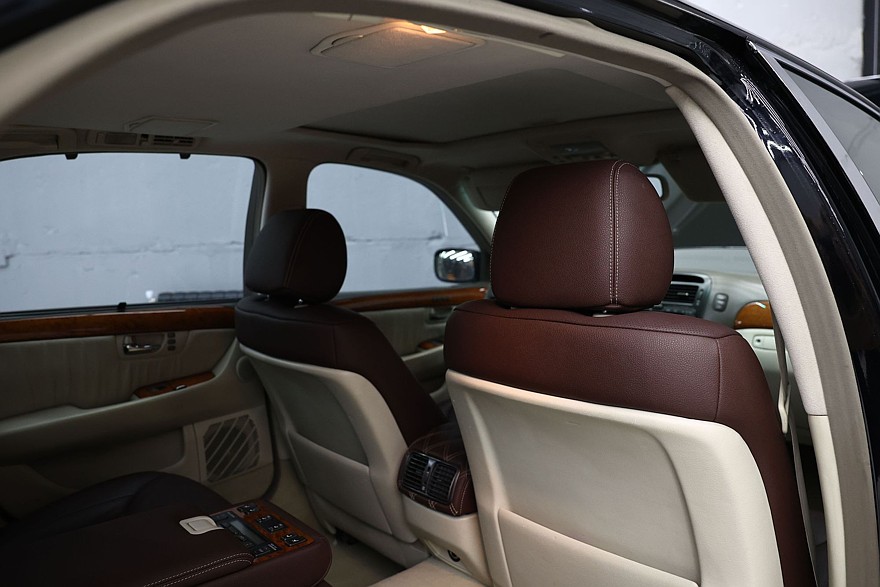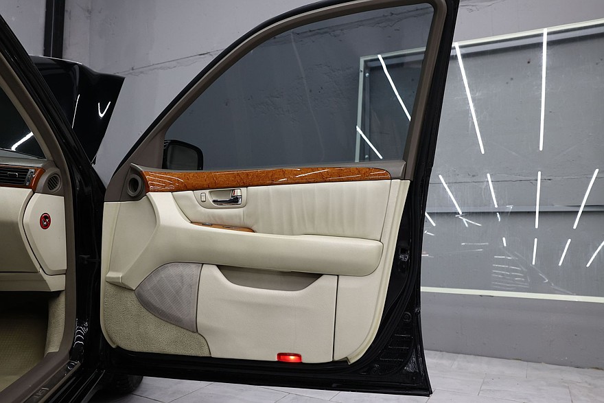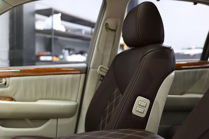 Комплектация этого Lexus LS430 называется «Президент», она стоит на полступени ниже флагманской «Президент Плюс». У обеих передние кресла оборудованы массажем, подогревом и вентиляцией, а разница заключается только в заднем диване: у «Президент Плюс» к нему подведена еще и вентиляция, а простому «Президенту» доступны только обогрев и массаж.