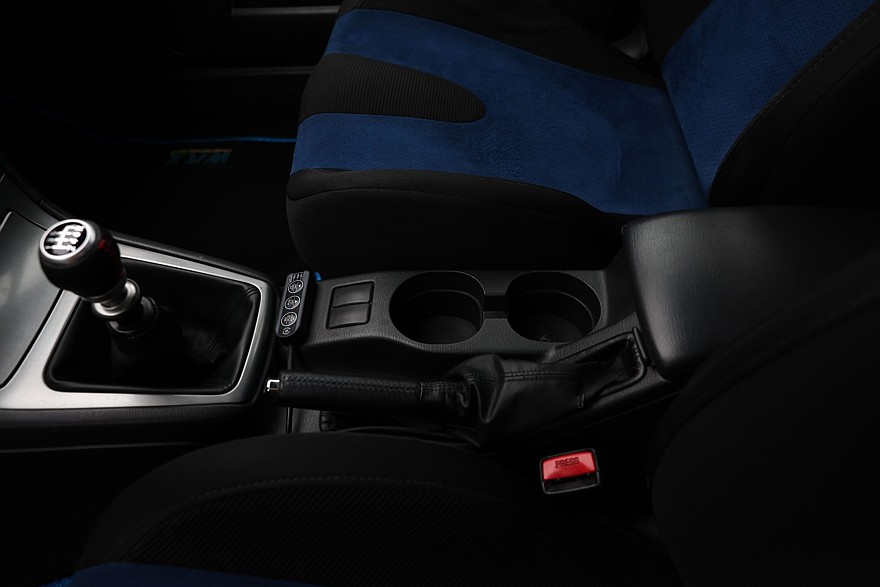 Интерьер этой WRX в целом стоковый, за исключением, наверное, самого главного – передних кресел от STI такого же поколения. Нынешний владелец приобрел их по случаю относительно недорого – за 20 тысяч за пару. У «стишных» сидушек поплотнее набивка, получше боковая поддержка, поэтому сидеть на них и в обычном движении, и в спортивной рулежке удобнее.