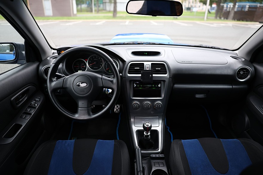 Внутри WRX поколения GD все простенько, без какой-либо экстравагантности и намека на роскошь, что свойственно как спортивному духу семейства Impreza, так и годам выпуска. Из элементов комфорта имеются однозонный климат, две фронтальные подушки безопасности и, в общем-то, все.