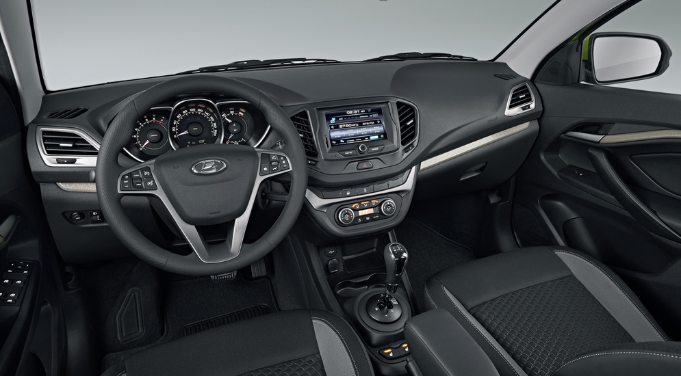На фото: интерьер серийной Lada Vesta в комплектации «Люкс»