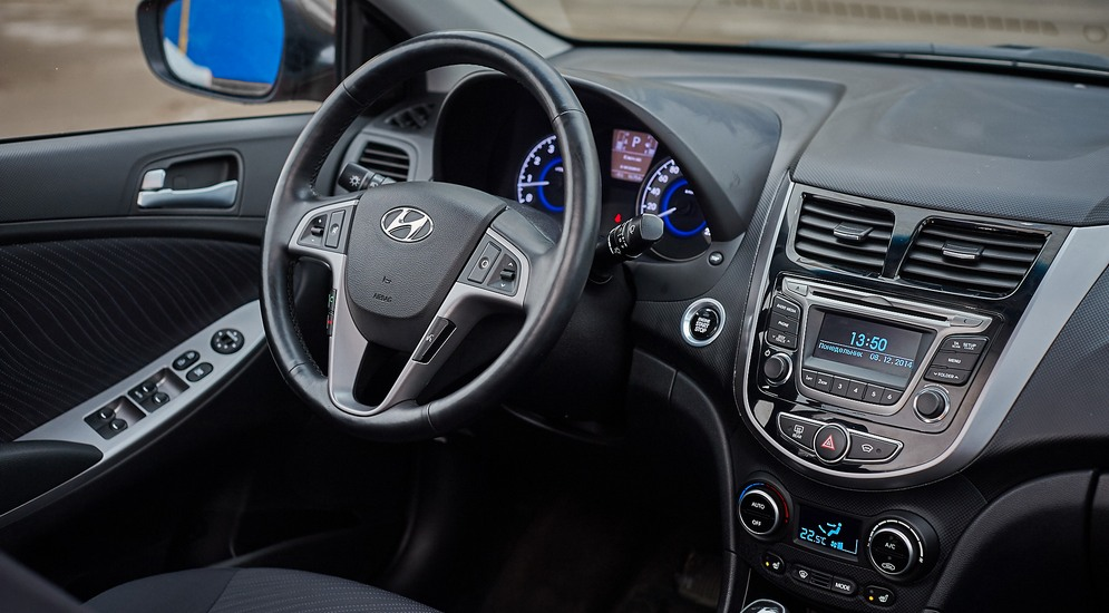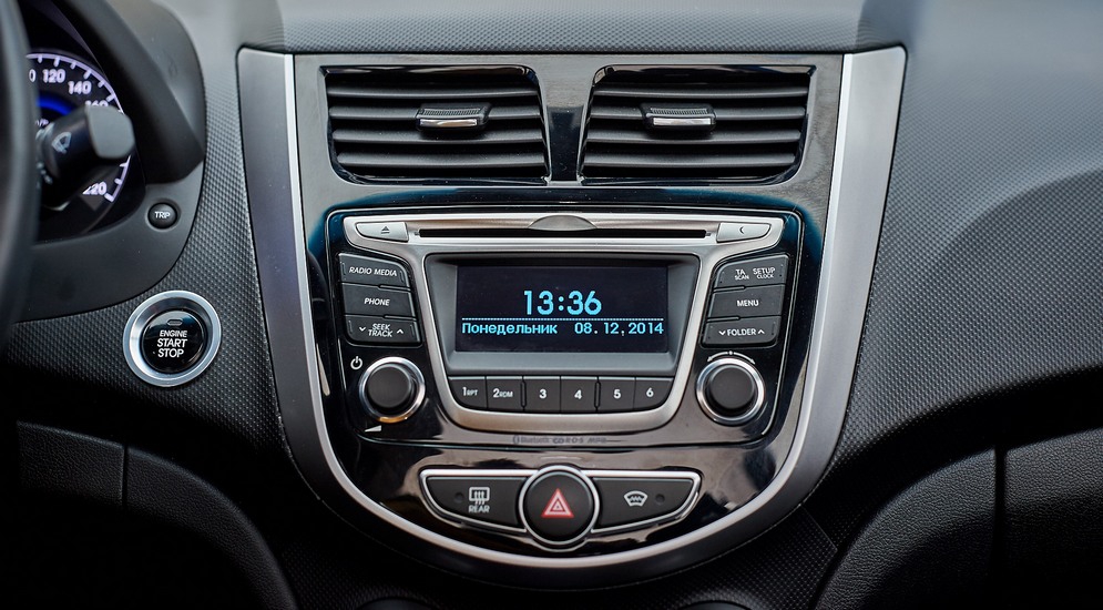 У корейских «братьев» стерео одинаковое, с той лишь разницей, что дисплей у Kia с красной подсветкой, а у Hyundai – с ядовито-синей. По функционалу все похоже – на всех трех машинах есть Bluetooth и USB, зато в Весте есть еще и слот для SD-карт, а у Rio и Solaris – нет.