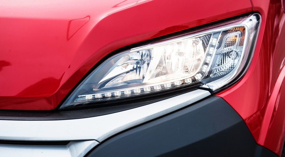 Главное отличие от предыдущего поколения – полностью переработанный фасад. От былого доброжелательного образа не осталось и следа, новый Citroёn Jumper холодно прищурился футуристичной передней светотехникой, задранной настолько высоко, что она остается практически чистой даже в самую слякотную погоду. А в комплектации, которая досталась нам на тест, были еще и «реснички» светодиодных ходовых огней – и выглядит эффектно, и электричества много не потребляет.