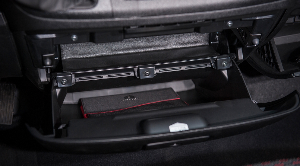 В чем смысл «универсальной трасформации»? О, это великолепная идея! Предположим, что вам надо перевезти максимальное количество груза: тогда вы складываете трехместный пассажирский диван и сдвигаете его вплотную к переднему ряду. При этом стенка, отделяющая грузовое отделение, двигается вместе с сиденьем, и вы получаете просто огромный грузовой отсек (более 13 куб. м).Если же объем груза не критичен, а хочется предоставить больше простора пассажирам, то отодвигаем стенку максимально назад, практически до арок задних колёс – и вуаля! Стенка вместе с диваном передвигается по направляющим в диапазоне 190 мм, и для того, чтобы ее переместить, достаточно усилий одного человека. Отдельно стоит отметить, что компания «Ривьера Авто» постоянно совершенствует свою конструкцию: пару лет назад такой же салон-трансформер в ГАЗ Соболь 4х4 двигался с куда большими усилиями, а сам диван ощутимо люфтил в направляющих и жизнерадостно постукивал на всех неровностях. Сейчас это осталось в прошлом – диван со стенкой сидит в пазах плотно и посторонних звуков не издает.
