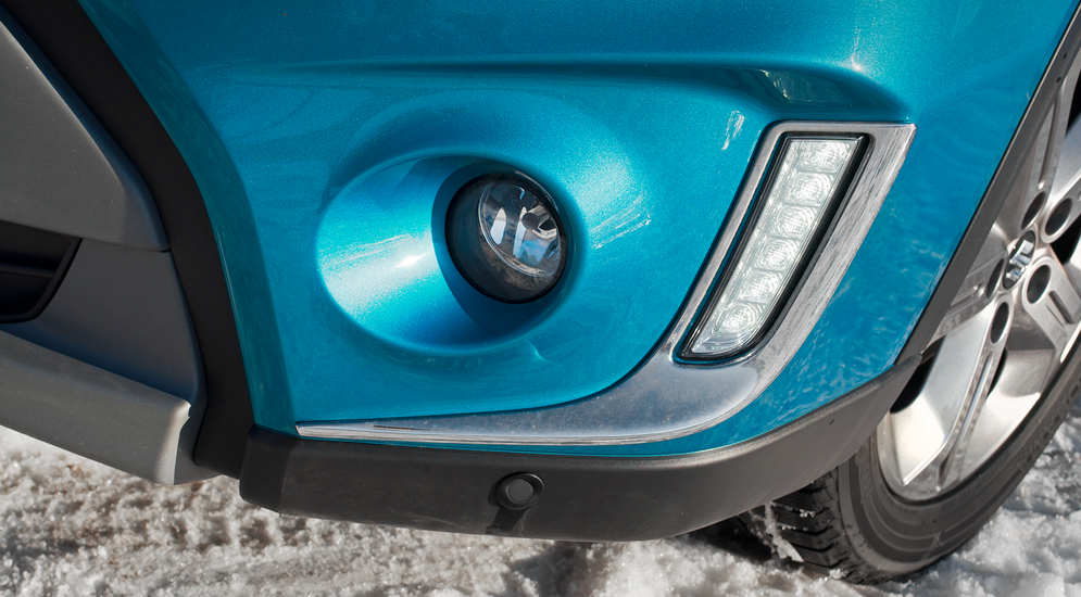 На Vitara лучше смотреть чуть издалека – тогда все кажется органичным. Если же подойти поближе, в глаза бросаются странной формы оптика с синими элементами линз, острые стыки кузовных панелей. А как вам “волна” выштамповки на боковине? Такое впечатление, будто разные дизайнеры пытались собрать в одном автомобиле как можно больше оригинальных идей, и никто не хотел уступать, поэтому решили использовать все сразу.