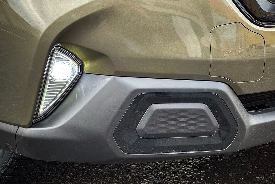 Товарищ сказал, что кроссовер выглядит по-японски, и это действительно так. Просто посмотрите на него: ну это ж явно не «китаец», несмотря на модную нынче схему с двухэтажной оптикой. По углам переднего бампера есть яркие противотуманки, что здорово, но что ещё круче – у «лесника» есть омыватели фар! Даже не помню, когда я встречал на новых автомобилях эту полезную вещь. А вот фонари кроссовера похожи на разноцветный пазл.