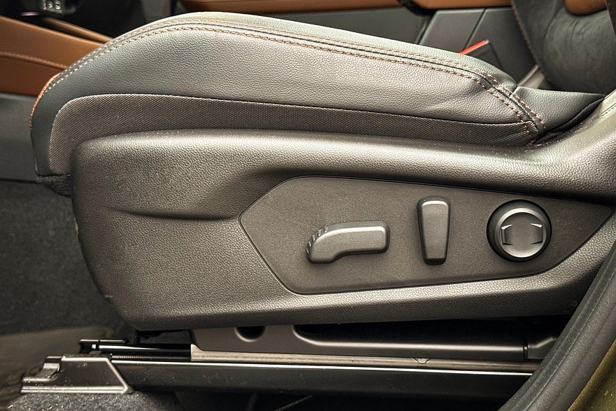 Интерфейс кажется архаичным, но после пары дней эксплуатации вдруг понимаешь, насколько дружелюбно и рационально он устроен. Как бабушкин шкаф: старомодно, но всё лежит именно там, где и должно. Крупные иконки, логичная структура, есть беспроводные Apple CarPlay и Android Auto. Передние кресла восхитительно удобны: наполнитель чуть жестковат, но нагрузка распределяется отменно. Диапазон продольной регулировки не самый внушительный, но по высоте оптимальное положение точно найдёт каждый.