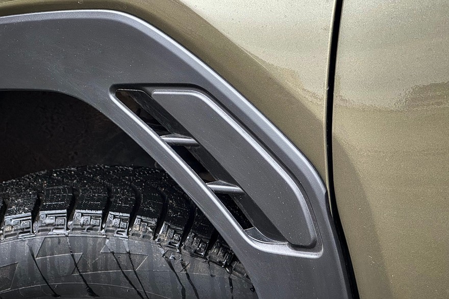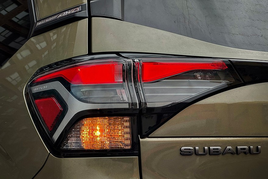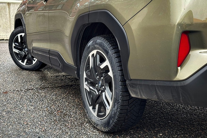 Subaru Forester повзрослел: угловатая и ребристая архитектура кузова намекает, что перед нами не просто очередной кроссовер, а суровый и уверенный в себе лесник. Как мужик, что рубит дрова быстрее, чем ты листаешь ленту соцсетей. Решётка радиатора заметно увеличилась, что придаёт передней части автомобиля довольно тяжеловесный характер. Субаровские арки – угловатые, будто вырубленные топором – неплохо подчёркивают образ, но 18-дюймовые колёса в них выглядят крошечными, как ботинки 38 размера на лесорубе.