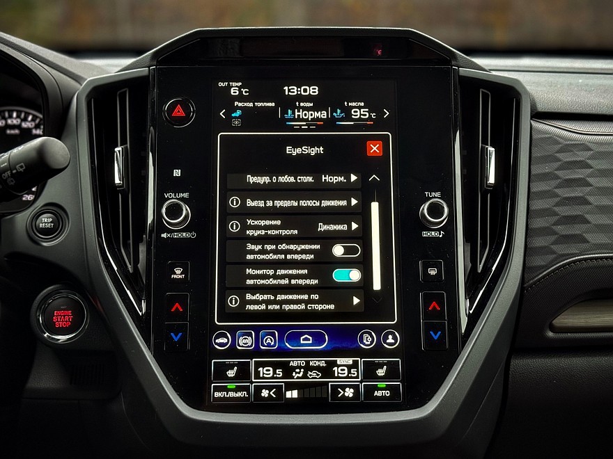 Зато аудиосистема с акустикой Harman Kardon играет очень мощно и ярко. Кроссовер получил новую версию фирменной системы превентивной безопасности EyeSight, отличающуюся наличием дополнительной широкоугольной монокулярной камеры. Японцы заявляют, что теперь электроника лучше распознаёт объекты на дорогах, особенно — пешеходов и велосипедистов. Полезная штука, спору нет, к тому же автоматическое торможение теперь работает очень чутко.