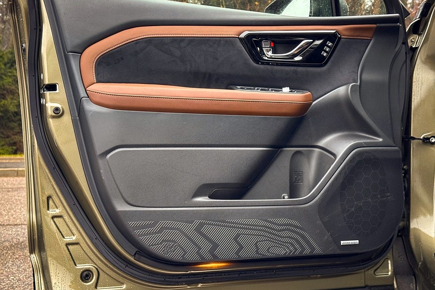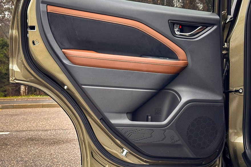 Нельзя не похвалить сиденья за выраженную боковую поддержку и отличные материалы – кожа и алькантара весьма качественны и приятны на ощупь. Так же отделаны и дверные панели, но пластик в нижней части дверей и передней панели жёсткий. Второй ряд довольно просторен, спинки дивана можно не только сложить в пропорции 40:60, но и отрегулировать по углу наклона – хоть и в небольшом диапазоне.