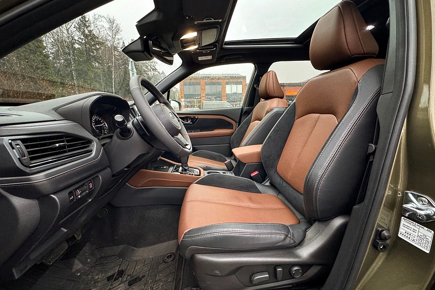 Классный цвет сливается с природой: в свете вечерних фонарей он кажется густым еловым мхом, а туманным утром – цветом мокрой травы, впитавшей холодный дождь. Так и тянет поехать куда-нибудь в лес. Габариты изменились минимально: плюс 15 мм в длину и плюс 13 мм в ширину – вроде бы незаметно на глаз, но ощущается, что Форестер стал более коренастым, словно расправил плечи и накачал бицепсы в спортзале. И не в гламурном фитнес-клубе, а в подвальной качалке, где скрипят штанги, а тренер разговаривает исключительно матом.