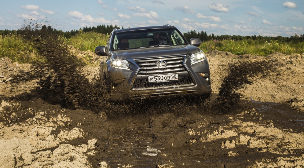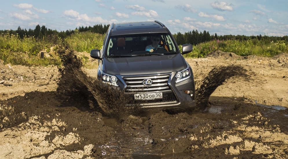 Загоняем машину в грязь и даже не замечаем, что проехались по луже, в которой "погибла" бы львиная доля так любимых россиянами кроссоверов. Особенно впечатлили ходы подвески GX. Пришлось преодолеть немало препятствий, чтобы, наконец, найти ей достойного соперника и вывесить хотя бы одно колесо.