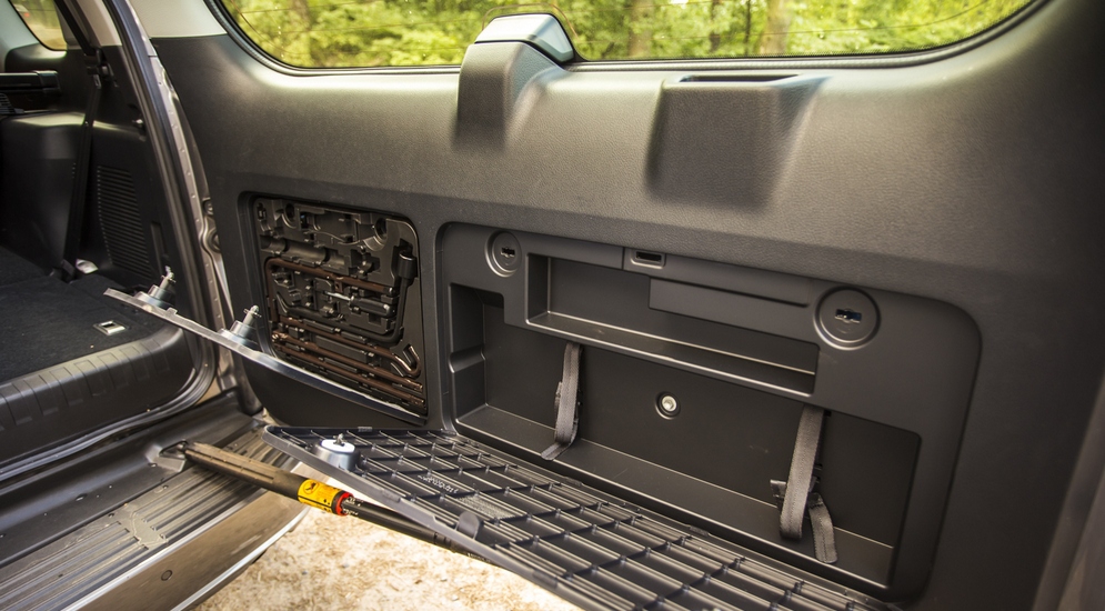 Зато этот автомобиль может похвастаться пневмоподвеской с регулируемой высотой, но… только задней оси. Однако чтобы заметить разницу между режимами Low и High, нужно сильно постараться — отличие заключается буквально в паре сантиметров и никаких существенных преимуществ на бездорожье это не дает. Чего не скажешь о высокопрофильной резине, которая как нельзя лучше подходит для этих целей.