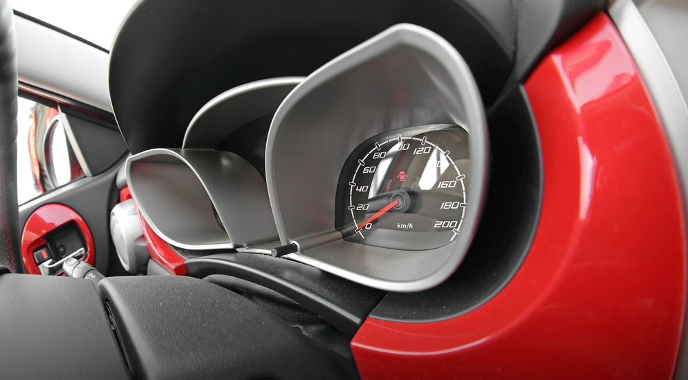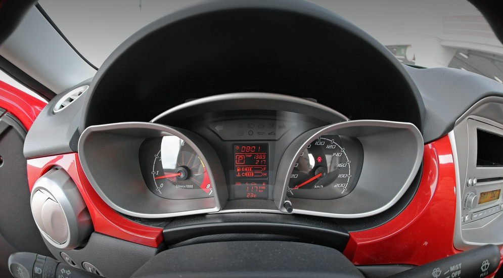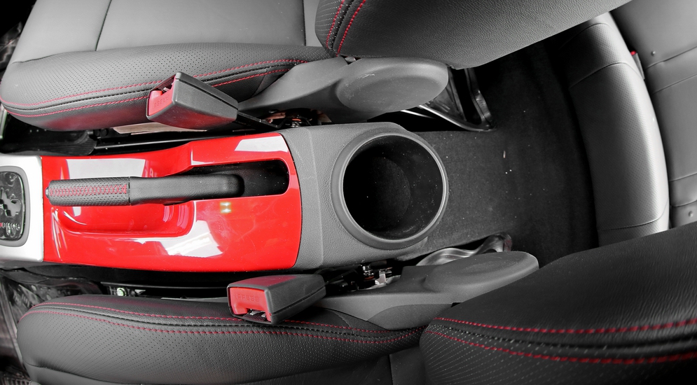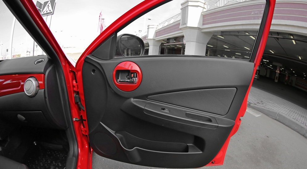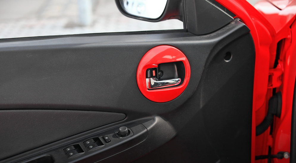 В целом интерьер производит очень двойственное впечатление. Панели в цвет кузова (особенно в нашем случае, когда кузов — красный) выглядят не слишком дорого, зато весьма спортивно и, я бы сказал, винтажно-ностальгически. С тем, что весь пластик — жесткий, тоже можно смириться, тем более при такой цене.