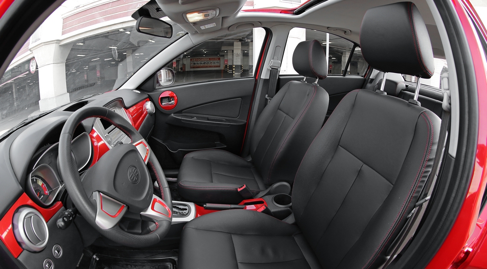 На тест мы получили топовую, самую богато оснащенную комплектацию Deluxe AT. Впрочем, от Comfort она отличается в основном обивкой сидений, обозначенной как «кожаная». Почему «обозначенной»? Да потому, что по моим ощущениям, никто из четвероногих эту кожу никогда не носил, и она хоть и качественная, но искусственная. Хотя, конечно, могу и ошибаться... Я ведь не на вещевом рынке, тыкать горящей зажигалкой в сидения и убеждать покупателя «Вах, смотри, настоящий кожа!» не буду. Просто отмечу, что кожзамом (или, как принято нынче политкорректно выражаться, «эко-кожей») не брезгуют в последнее время ни BMW, ни Mercedes-Benz. Так что китайской машинке в упрек ставить это не будем.