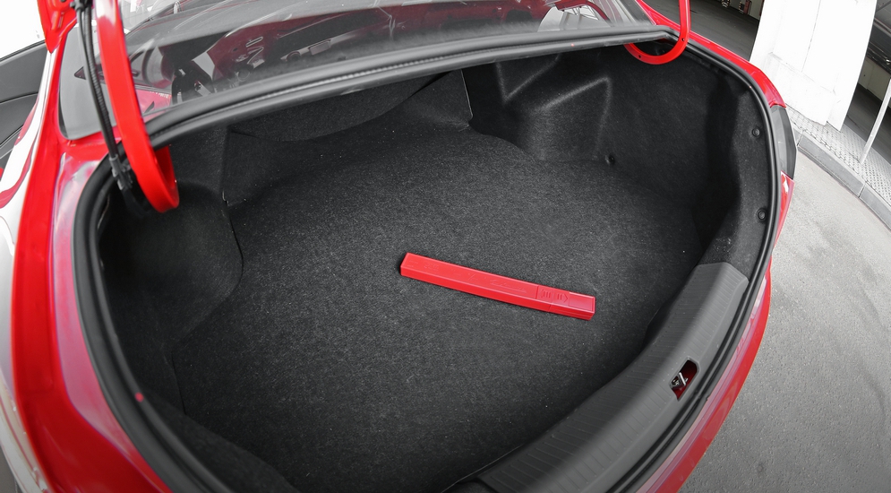 Правда, возник небольшой казус. Оказалось, что рамка номерного знака перекрывает замок, и снаружи багажник не откроешь. А изнутри? Я долго искал рычажок или кнопку. В итоге нашел, но для этого пришлось приподнять угол штатного резинового коврика.