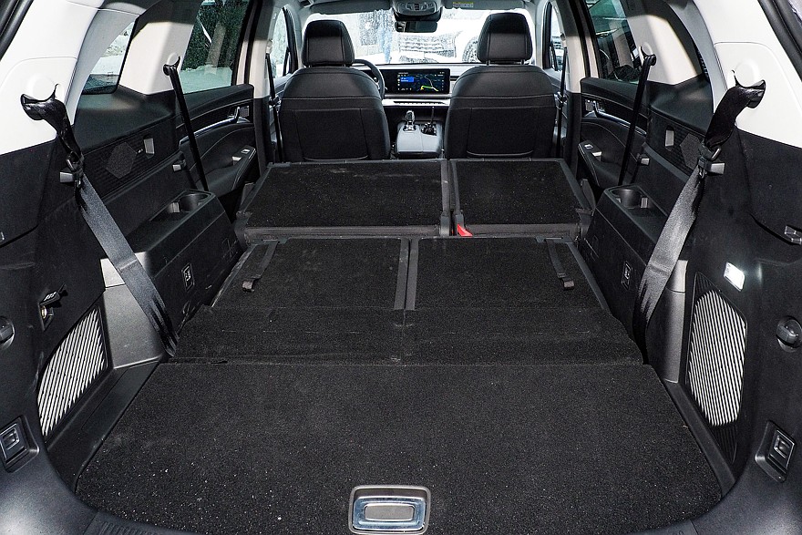 Не меньший восторг вызывает и багажник. В пятиместной конфигурации места в нем не много, а очень много! И даже если разложить два сиденья третьего ряда, для багажа все равно останется объем, равный 332 литрам. Вдобавок багажник очень хорошо оборудован: там есть и подсветка, и петли для фиксации груза, и 12-вольтовая розетка, а для рулонной шторки предусмотрено штатное место под фальш-полом. Если сложить и третий, и второй ряды сидений, то вы получите площадку с ровным полом, на которой можно или разместить груз объемом до двух кубометров, или организовать вполне пристойные спальные места.