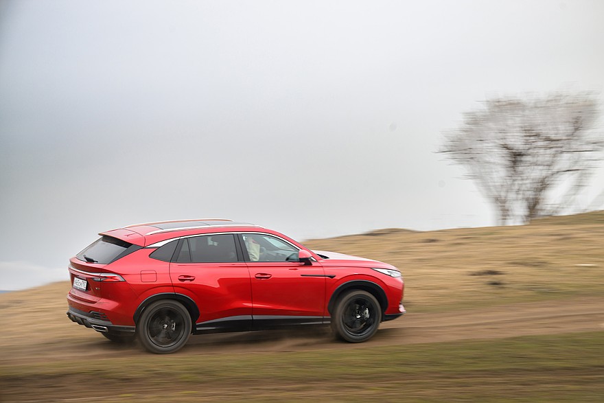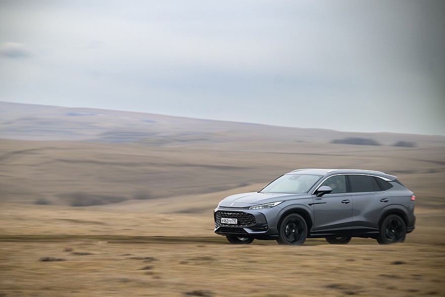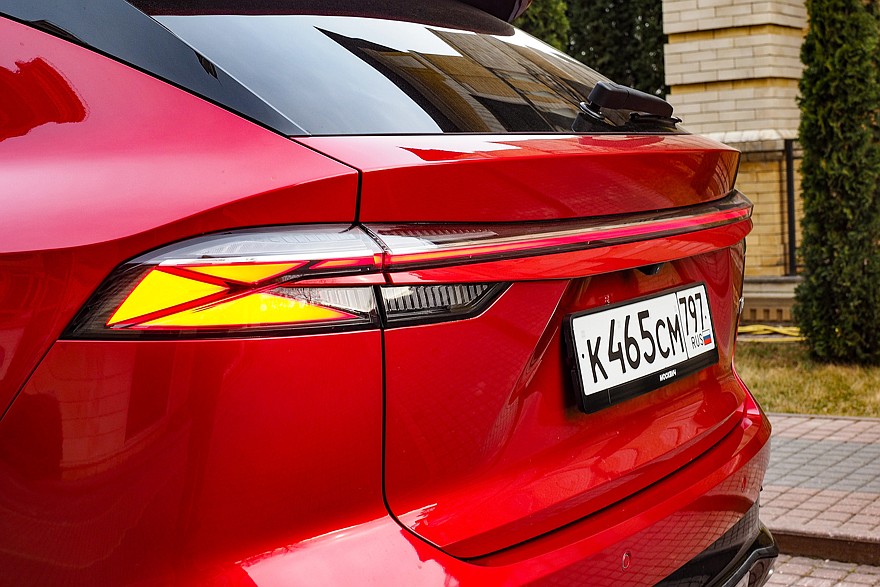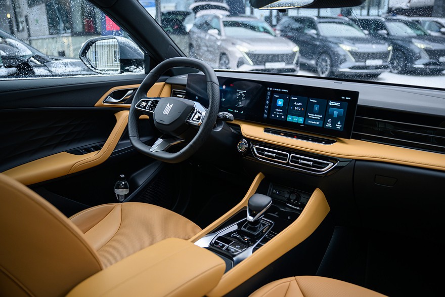Как Москвич М90 едет? А так же, как и выглядит – солидно. Плавное, но энергичное ускорение на старте, плавный, но при этом напористый набор скорости. Благодаря относительно низкопрофильным шинам на 20-х дисках кроссовер цепляется за траекторию, как кошка за ковер. При этом всякие неровности подвеска обрабатывает весьма комфортно, не сотрясая экипаж до самых глубин организмов. Правда, у такой настроенной на комфорт подвески есть и оборотная сторона: в энергичных поворотах машина заметно кренится. Опять же, вполне чувствуются и некоторые задержки в переключении передач 9-ступенчатой гидромеханикой. Особенно это ощущалось на серпантине: и вход, и выход из поворотов получаются не на тех передачах, на которых хотелось бы.
