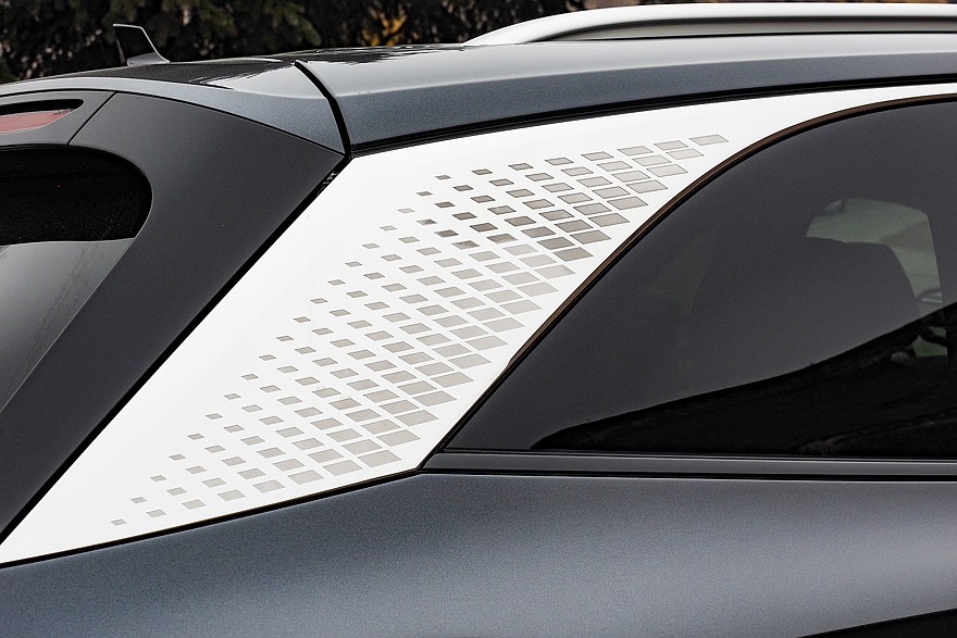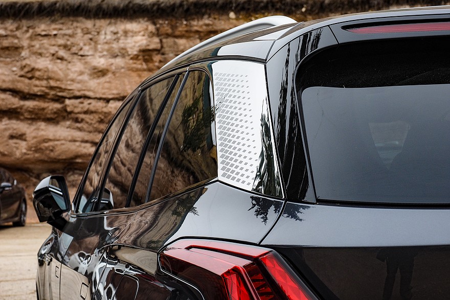 Стилистическое единство у обеих моделей наблюдается, но хватает и различий. Например, у М70 дверные ручки традиционной конструкции, а у М90 – модные, выкидные. И задняя светотехника выглядит по-разному, хотя есть и общий элемент – соединяющая задние фонари светящаяся полоска. Естественно, вся светотехника, и передняя, и задняя – полностью диодная. Несколько по-разному выглядят и врезанные в задний бампер хромированные декоративные законцовки выхлопных труб, которые у М90 имеют более сложную форму. Впрочем, и сами эти законцовки – чистой воды декорация. Ну а единственным оригинальным и запоминающимся элементом внешнего оформления для меня стала хромированная «клюшка» – накладка на заднюю стойку, плавно переходящая в молдинг над боковым остеклением, на которую нанесен градиентный рисунок из матовых ромбиков.