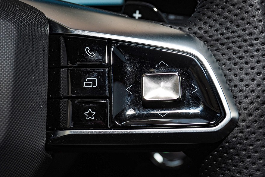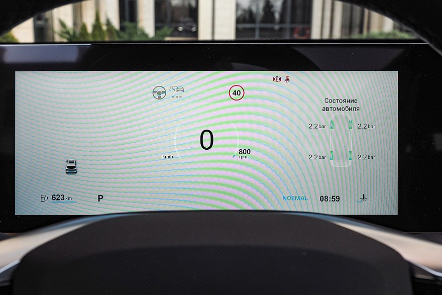 Что оставило двойственное впечатление, так это приплюснутый сверху и снизу руль. Привыкнуть к нему, конечно, можно… Только можете называть меня ретроградом и консерватором, но для меня традиционная круглая баранка, без всяких срезанных сегментов, всегда будет удобней. И не слишком понравился дизайн приборного экрана, точнее, отсутствие возможности выбрать вариант с «нарисованными» аналоговыми циферблатами. Я как-то привык более или менее постоянно контролировать обороты двигателя, а здесь они выводятся мелким шрифтом и дублируются почти не различимой голубой полоской вокруг крупного показателя скорости.