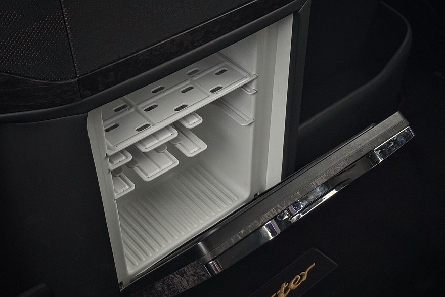 В нижней части перегородки есть небольшой холодильник, который может охлаждать содержимое отсека до -10 градусов, так что в нём можно смело возить даже мороженое. И что-нибудь покрепче, чтобы жизнь за перегородкой казалась ещё приятнее – справа есть вырез под бутылку, а верхнюю полку можно вовсе снять. Удобно! По бокам от холодильника есть вместительные карманы для вещей, а стёкла дверей можно прикрыть выдвижными (вручную) шторками, поскольку заводская тонировка задней полусферы не особо тёмная.