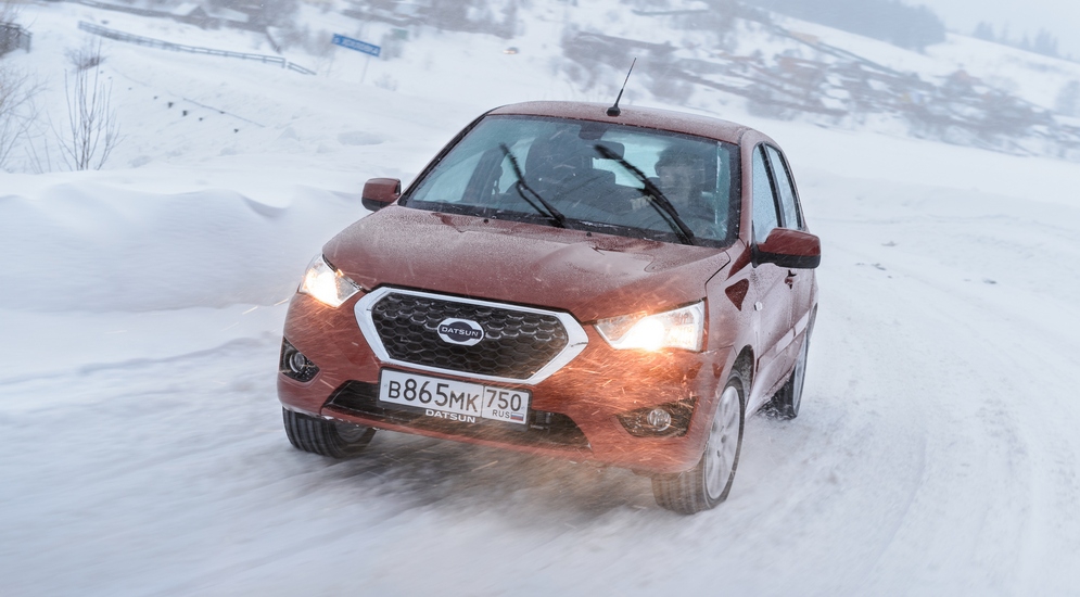 Так вот, еще пару слов о салоне. Первое знакомство с Datsun состоялось при еще летних погодных условиях. Теперь же нас окружала Пермь с 15-градусным морозом. И вот ведь незадача: на обеих машинах, которые я испытал, безбожно запотевали стекла. Включение кондиционера помогало лишь на несколько минут. Стоило перевести потоки воздуха со стекол в салон, как окна покрывал иней. Изнутри. Видимо, систему вентиляции еще нужно доработать...