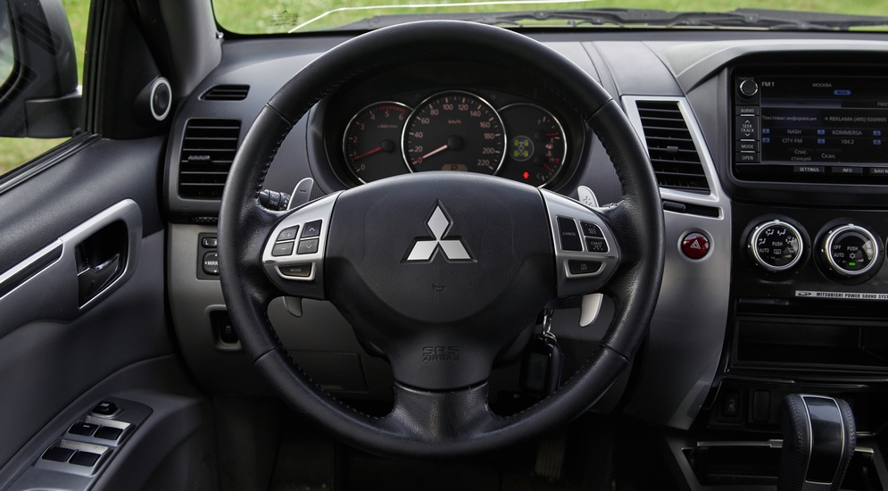 Несуразность вторая – ощущение того, что твой Pajero Sport – хоть и выпускается по сей день, но застрял где-то в начале нулевых. Аскетизм салона, материалы, отсутствие передовых опций, появившихся у конкурентов три-четыре-пять лет назад, – это все бросается в глаза. В Nissan Pathfinder есть, к примеру, камера кругового обзора, в Toyota Highlander – кнопка «старт-стоп», бесключевой доступ, подогрев руля, автоматический переключатель фар и много других приятных вещей.