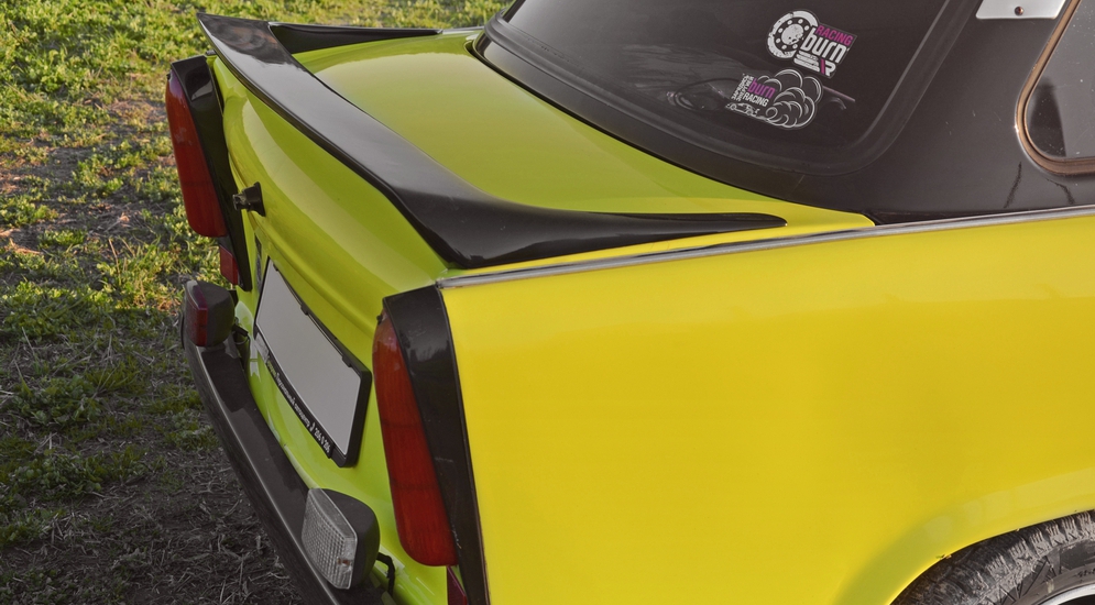 Во-первых, мотор Траби имеет оригинальную, даже новаторскую для своего времени компоновку. Сам двигатель расположен поперечно отсеку, а главная передача находится между ним и двухвальной КПП. Нечто подобное встречалось тогда лишь на шведских SAAB, да чуть позже было применено мистером Иссигонисом на своем Mini. Во-вторых, Trabant – это прямой наследник компании DKW, в частности, малолитражки P70. Но его двигатель имел совсем другое происхождение и относился к формации Framo, занимавшейся выпуском легких грузовиков. Так что насчет маломощности Траби – это еще бабка надвое сказала. В-третьих, кузов для этого двухтактника собирался хоть и в великой социалистической экономии, но по принципу «не навреди». Сваренный из стальных штампованных панелей, снаружи он обшивался легкодоступным дуропластом – потрясающим достижением рационализаторства в производстве. Этот материал получали из фенолформальдегидной смолы с армирующим наполнителем из хлопкового очеса – иначе говоря, отходов. При конвейерной сборке дуропласт был хорош тем, что производить его оказалось дешево, а штамповать формовочные панели и того проще. Помимо декоративной функции, такой пластик отлично защищал стальные детали от влаги и, соответственно, коррозии. Поэтому отъездить на Трабанте полвека заботливому автомобилисту и теперь вполне по силам.