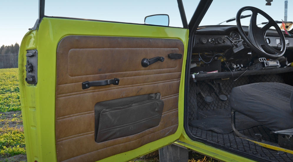 А восстанавливать было что. Лет семь назад Денис случайно увидел эту машинку припаркованной во дворе одной из жилых минских окраин. У дворовых бабушек узнал адрес владельца. Оказалось, в хозяйках Трабанта ходила некая дама, наследница военного отставника, который лет 40 назад доставил трофейный автомобиль с мест былой службы. О покупке сговорились сразу – ценник в $150 за нерабочую рухлядь девица посчитала подарком небес. Вскоре коматозный Трабант 1977 года выпуска с улицы переместили в уютный гараж, где Денис и начал над ним свои лечебные «танцы с бубном». Кроме мотора, собранного практически с нуля, хозяину пришлось восстанавливать и кузов. Когда был свинчен поверхностный дуропласт, обнажились хронические болезни Траби – металл под ним во многих местах сгнил и раскрошился. Большую часть этих деталей Денис выточил своими руками. Пластиковый декор от времени облупился и тоже нуждался в обновке. Перед покраской его основательно зашкурили и покрыли грунтовкой. По роду занятий Денис – автомаляр, так что к этой задаче подошел с глубоким знанием дела. Так Трабант вновь покрылся родным, желто-белым колером. А черная кайма по краям бортов – уже из разряда авторских модификаций его хозяина.