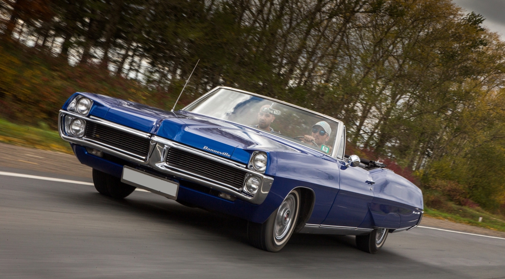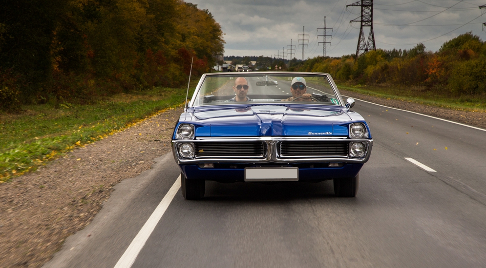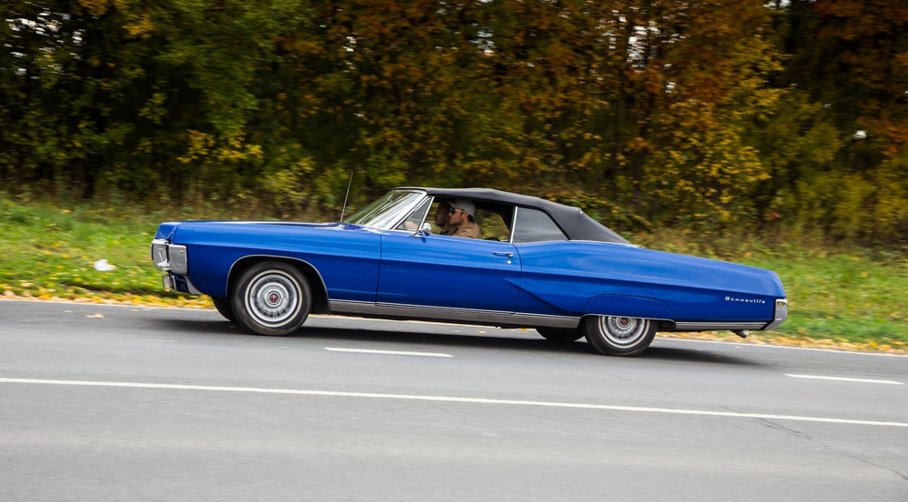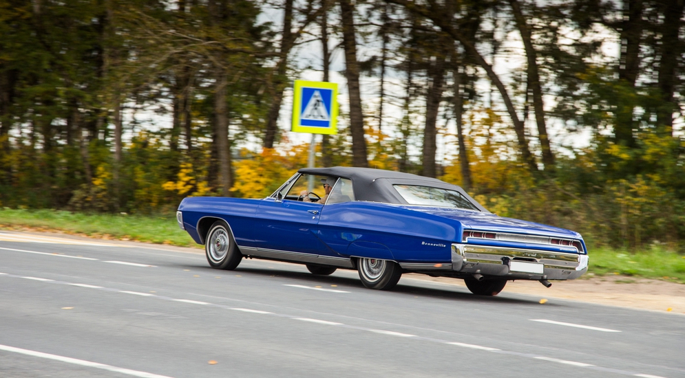Несмотря на привитый ДеЛореаном спортивный имидж марки, Bonneville на правах конкурента Lincoln остался верен мягким настройкам подвески. Минимальные усилия на тонком трехспицевом руле громадного диаметра – из этой же оперы. Отлавливать этого мастодонта, попавшего в колею, не самое приятное занятие. Но если найдете русский аналог прямого, как стрела, американского хайвея, то Pontiac будет рад прокатить вас на скоростях 170-180 км/ч.С другими особенностями эксплуатации кабриолета эпохи расцвета хиппи вполне можно ужиться. Огромная площадь остекления заставляет забыть об отсутствии правого зеркала (особенность комплектации американских автомобилей тех лет). Барабанные тормоза по кругу радуют не только долговечностью, но и адекватностью работы. В это сложно поверить, но чтобы развернуть Bonneville, вам не потребуется полквартала. Радиус поворота почти шестиметрового «малыша» сравним с современными внедорожниками вроде Chevrolet Tahoe.