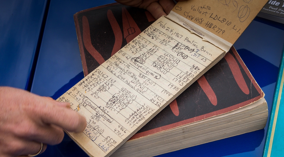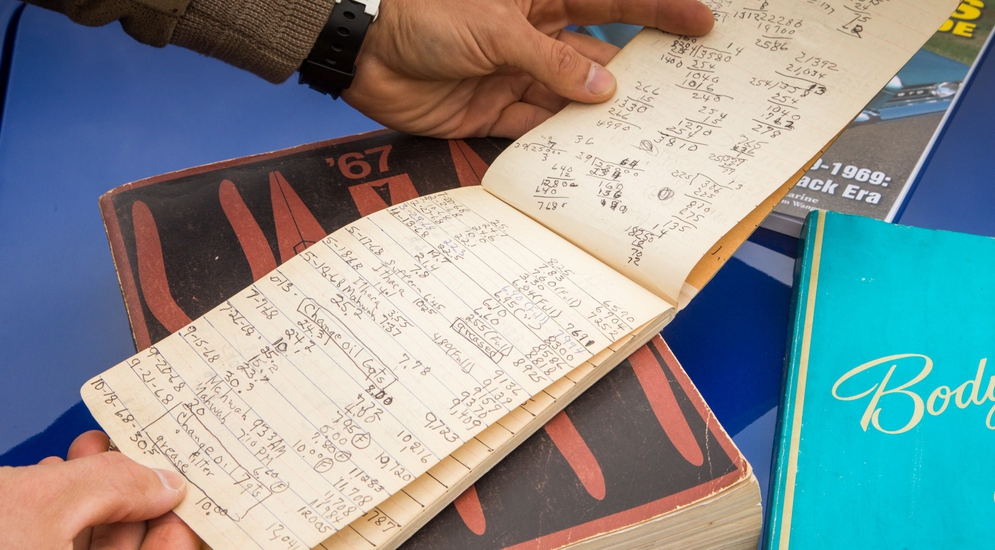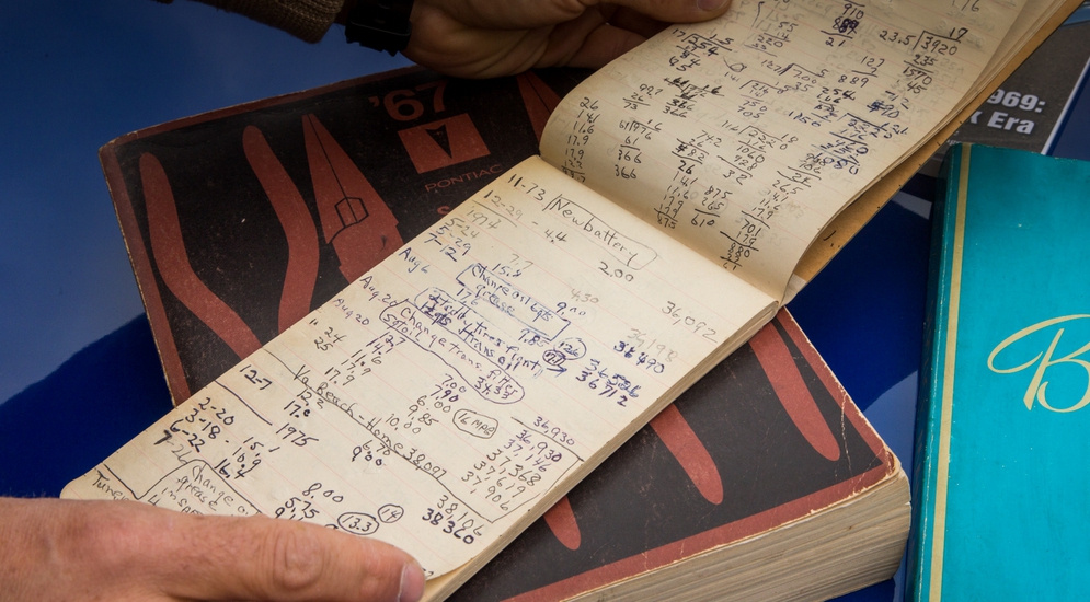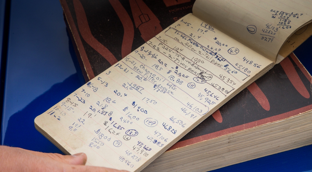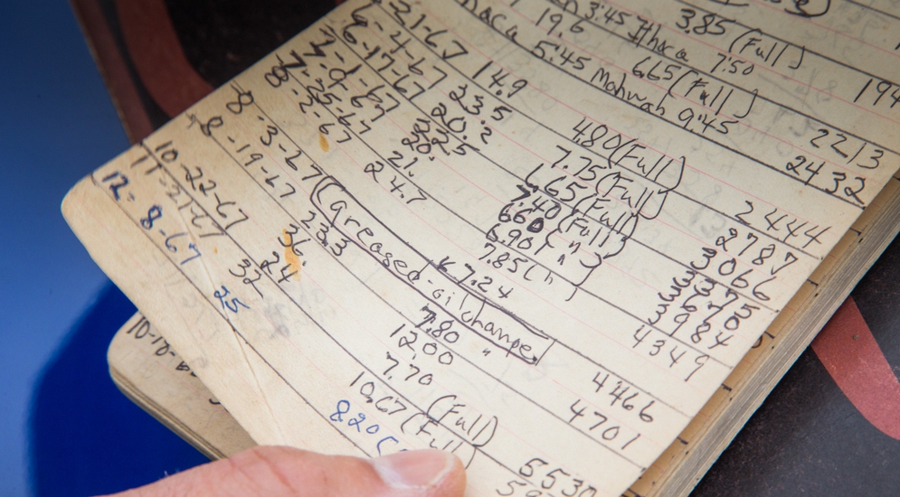 Бывший владелец заслуживает отдельного упоминания. Джентльмен из Нью-Джерси приобрел открытый Bonneville 24 февраля 1967 года. Отследить, что затем происходило с автомобилем, начиная с этого момента, можно с точностью до дня. Все действия, производимые с машиной, скрупулезно фиксировались в блокнот. В нем отмечен каждый визит на сервис и зафиксирована каждая заправка. Теперь я знаю, что заправить полный бак флагманского Pontiac в 1967 году стоило почти $12. Замена масла обходилась почти вдвое дешевле – $7. По этим записям можно отследить динамику цен на топливо в США вплоть до 2013 года. Бесценный документ, под стать самой машине!