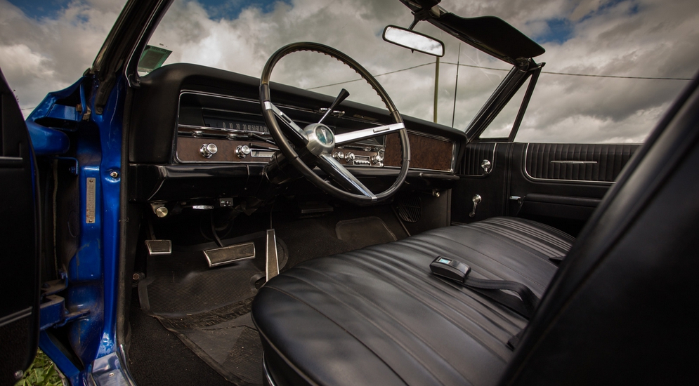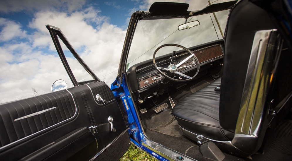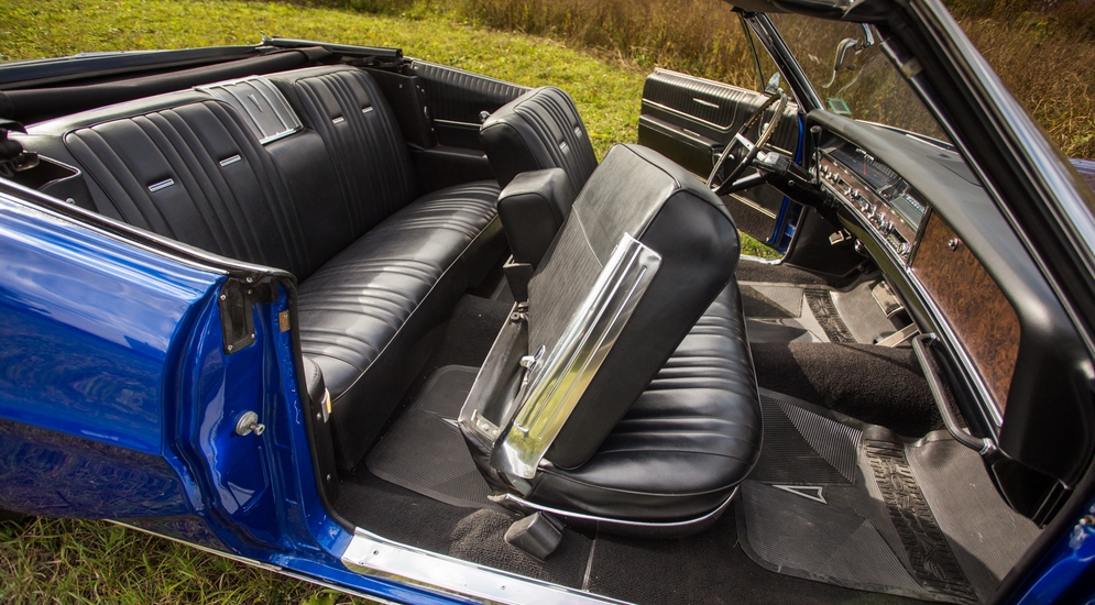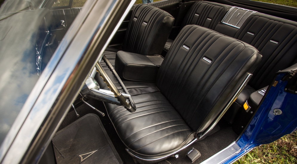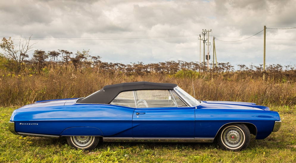 Со стапелей завода Bonneville вышел в черном цвете. Но за долгие годы пусть и максимально щадящий эксплуатации краска успела потускнеть. Вопрос перекраса был делом решенным, а вот в выборе цвета Роман решил отойти от оригинала. С автомобиля сняли двигатель, кузов покрыли антикором и нанесли новый колер. Результат перед вами – кабриолет сверкает насыщенным синим металликом. Сверху для дополнительной защиты нанесена бронировочная пленка 3М.