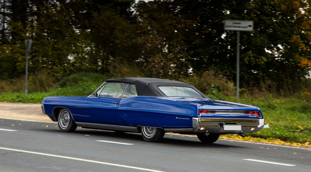 Если проводить параллели с современными авто, то Bonneville – это аналог, скажем, Mercedes-Benz S-Class Cabriolet, с пятидесятилетней поправкой на особенности эксплуатации. Пусть между ними бездонная пропасть из технических и маркетинговых наворотов, цель одна и та же. Комфортное перемещение на мощном автомобиле владельца с замашками эстетствующего эгоиста.Флагману – все самое лучшее и большое. У Bonneville самая длинная база из Понтиаков тех лет. И мотор под стать – V8 объемом 6,6 литра. Могучее карбюраторное сердце развивает около 340 л.с., передавая их, естественно, на задние колеса. Газ в пол – и первые 2-3 секунды они шлифуют асфальт, а более двух тонн отборной американской стали в нетерпении подрагивают на месте, пока подружатся крутящий момент и сила трения.