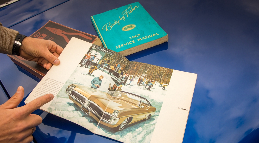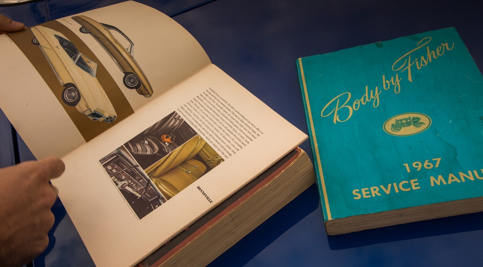 Маленький пробег, как известно, – палка о двух концах. Да, износ двигателя при пробеге в 50 тысяч миль, скорее всего, будет минимальным. Но не двигателем единым! Множество резиновых деталей от долгого стояния, например, имеет свойство рассыхаться. Но и здесь нашего героя ждала невиданная удача.На Pontiac до сих пор стоит родная резина и тормоза. Кое-что, конечно, пошло трещинами и было заменено, но это можно считать незначительными мелочами. В прошлом году Роман установил новый тент фирмы OPGI. Все внешние детали родные и до сих пор в отличном состоянии. Им потребовалась лишь полировка. Спасибо создателям Bonneville и лично Джону ДеЛореану, заменившим большую часть хрома на более износостойкую нержавейку. Но Роман на всякий случай все равно привез из Америки кучу деталей, включая бампера и молдинги. Попутно он достал все оригинальные мануалы по эксплуатации и ремонту Bonneville, а также фирменные каталоги конца 60-х.