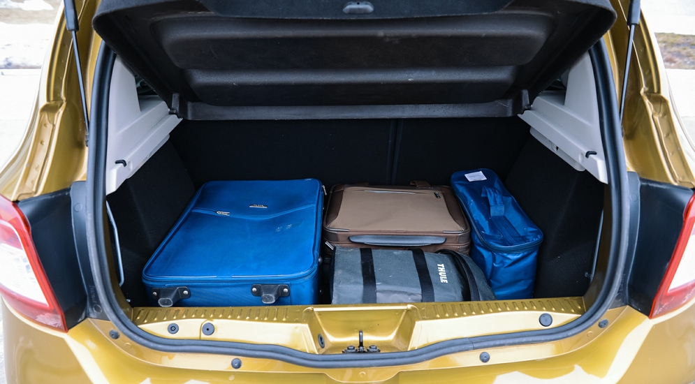 Вроде и это немного, но если взять в рассмотрение ещё и разницу по габаритным длинам – 4 165 мм у Xray и всего 4 080 мм у Sandero Stepway – то становится понятно, почему для российского автомобиля удалось получить багажник объёмом в 361 литр (и 1 207 литров при сложении спинок), в то время как у французского он вмещает всего 320 литров. Практическая разница отлично видна в нашем сравнении, взгляните на фото: в багажнике Stepway вещи четырёх человек размещаются практически вплотную к бамперу, оставляя место разве что под пятилитровую бутыль с «омывайкой», в то время как у Xray до задней кромки багажного отделения ещё остаётся солидный зазор.
