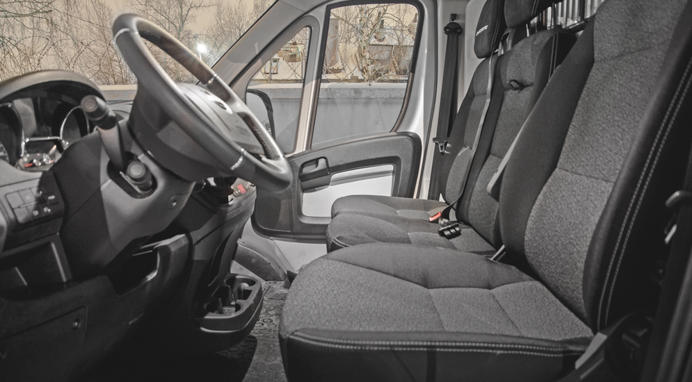 В конструкции подвески кардинальных изменений нет: спереди – Макферсон, сзади – рессоры. За безопасность теперь отвечают несколько систем, прописавшихся в базовой версии фургона – например, система курсовой устойчивости, компанию которой, разумеется, составляют такие базовые вещи, как ABS и подушка безопасности водителя. Да, хоть ничто автомобильное Дукато и не чуждо, фронтальные подушки для пассажиров еще не стали базовой нормой. Зато из удобных и полезных функций здесь есть датчик уровня масла в двигателе и мониторинг давления в шинах. Последняя на наших дорогах вполне себя оправдывает. Из особенностей штатной российской адаптации, тоже вполне естественных, все же стоит упомянуть Webasto, более мощный генератор и подогрев топливного фильтра. Ну и полноразмерную запаску – хотя она тоже приносит водителям не только приятные ощущения.