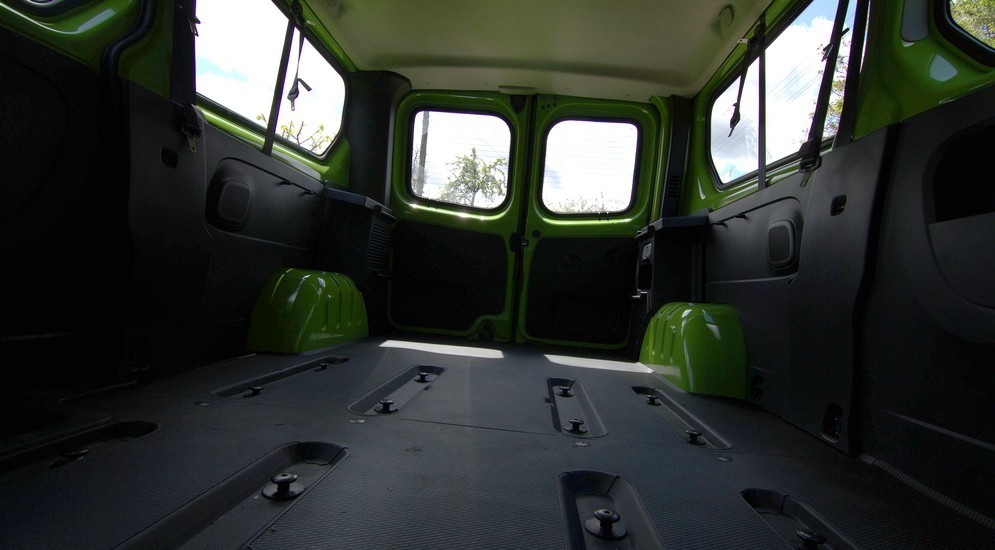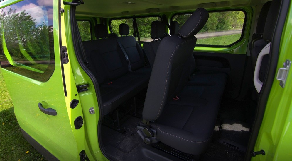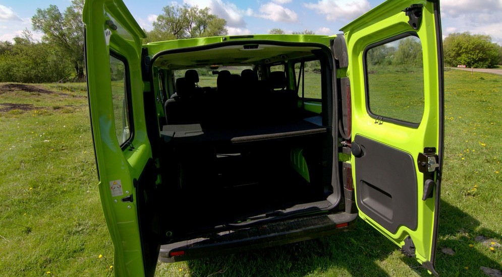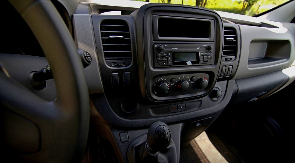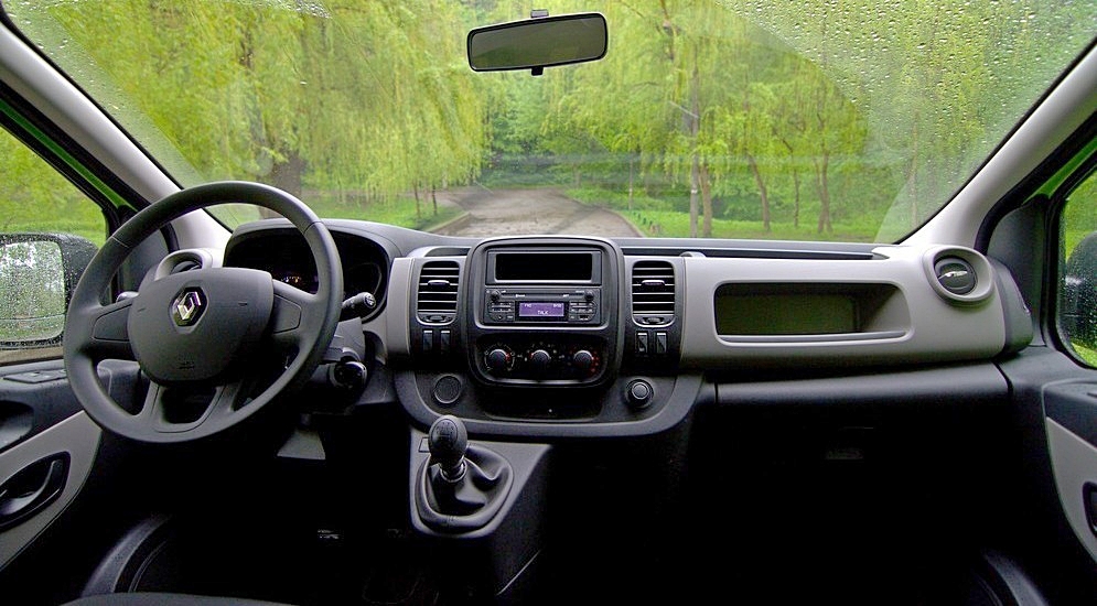 Передние двери широкие и тяжелые, ручки – массивные, горизонтальные. Регулировка высоты подушки водительского сиденья доступна уже в базе, но даже в нижнем положении сидишь на одном уровне с владельцами нового Nissan Patrol. Ступенька здесь точно не лишняя – без нее пришлось бы вскарабкиваться. Хорошую обзорность обеспечивают большие окна и громадные боковые зеркала, которые разделены на секции (нижняя — полусферическая). В богатых комплектациях центральное зеркало может иметь ЖК-экран, куда выводится изображение с камеры заднего вида. Также для Трафика доступен и парктроник. Как минимум что-то одно из этого явно не помешает, поскольку автомобиль действительно длинный и громоздкий, а разделенная на две части задняя дверь существенно ухудшает обзорность назад. По желанию клиента машину можно оснастить и фирменным мультимедиа с навигационной системой. Это точно такая же MEDIA NAV, как у легковых Renault. Но даже простенькая магнитола оснащена удобнейшим подрулевым пультом управления и разъемом для флэшки. Еще один USB-вход расположен в верхней части торпедо – можно заряжать смартфон и не надо выключать музыку.В общем, новый Трафик может иметь практически все те же опции, что Logan, Sandero или Megane. Желаете круиз-контроль – не вопрос. Система бесключевого доступа – пожалуйста. Можно доукомплектовать Трафик и боковыми подушками безопасности или складным креслом пассажира, которое превращается в столик. В общем, ограничить уровень оснащения может только бюджет или здравый смысл. Для служебного автомобиля вряд ли кто-то будет заказывать запуск с кнопки… Уже в начальной комплектации Renault Trafic 3 традиционно радует обилием всевозможных ниш, полочек и отделений. В верхней части торпедо есть углубления для емкостей с напитками, будь то бутылка с водой или чашка кофе. На центральной консоли – выдвижной подстаканник. В наличии и специальные прорези для монет. В общем, кабина имеет 14 отделений суммарным объемом 90 литров. Среди них может быть 54-литровый контейнер под пассажирским креслом. У многих аквариум дома меньше…