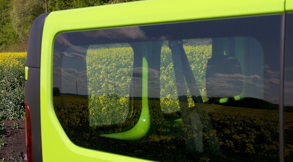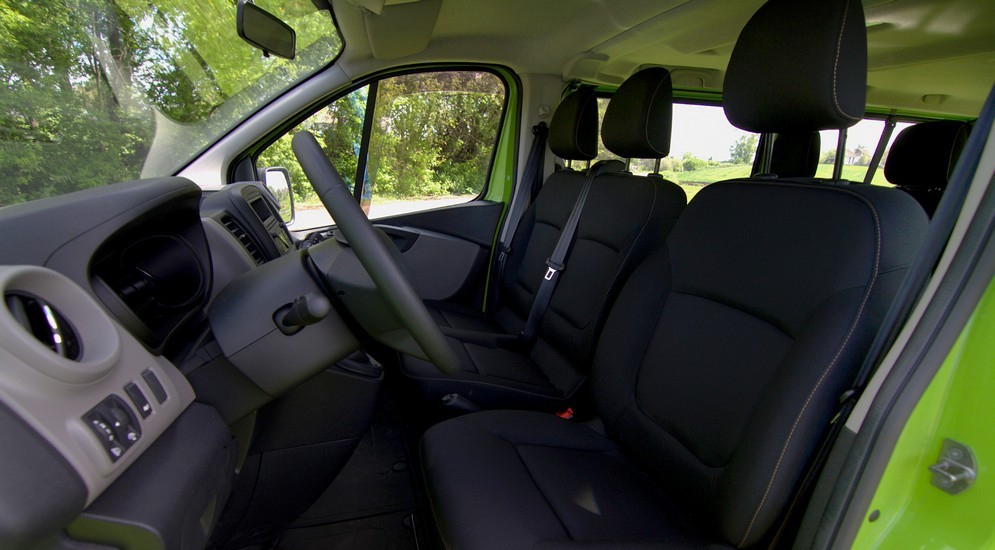 Снаружи новый Трафик не то чтобы преобразился, но очень изменился. Конечно, он не такой безупречно стильный, как новый Mercedes Vito. Но Трафик в ином классе, да и по цене несравним. Теперь Renault Trafic выглядит больше и «автобусней», что ли… Как и предшественник, новинка доступна в разных кузовных исполнениях – от шасси с кабиной до длиннобазного грузопассажирского или пассажирского варианта на 9 мест. Существенно расширилась гамма цветов, появились яркие оттенки. Кстати, такой салатовый цвет, как на нашем тестовом образце, доступен без какой-либо доплаты. Дело вкуса, конечно, но как по мне, «кислотный» окрас Трафику очень даже к лицу. И веселее, и на дороге ты лучше заметен.Что внутри?